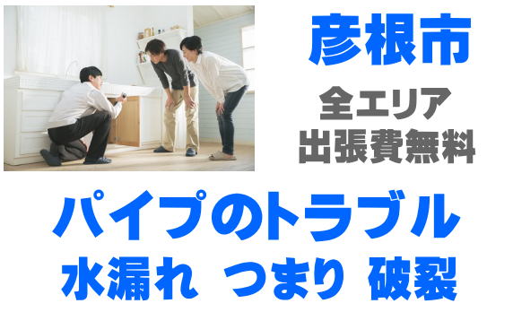彦根市でパイプの修理を行っています。水漏れ、つまり、水道管破裂、凍結、漏水などのお困りごとはご相談ください。