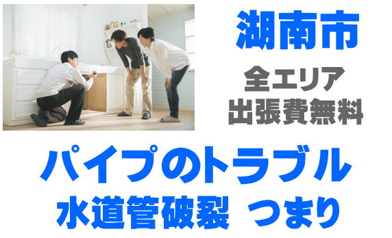 湖南市でパイプの修理を行っています。水漏れ、つまり、水道管破裂、凍結、漏水などのお困りごとはご相談ください。